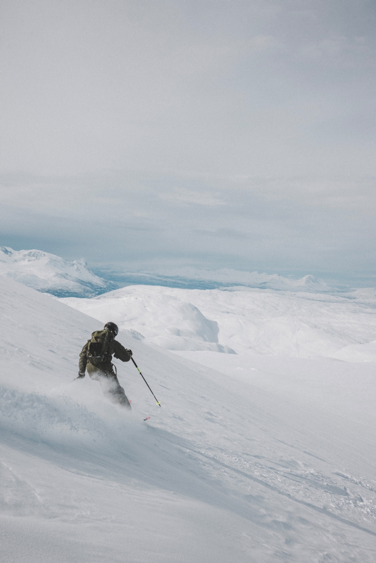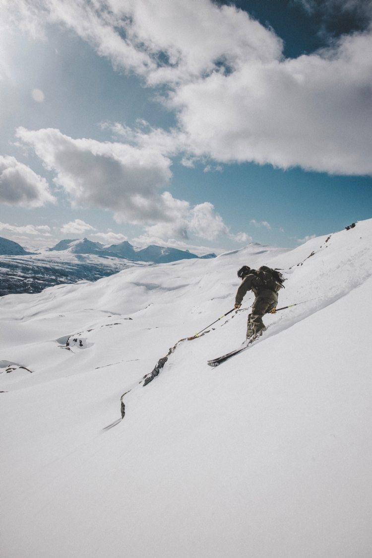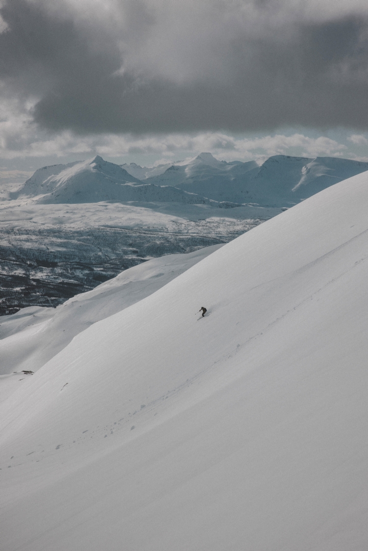 From Rånkeipen you have the greatest view in the Narvik area. Nicklas skiing down from the summit. April 2008.     Photo: Andreas Bengtsson