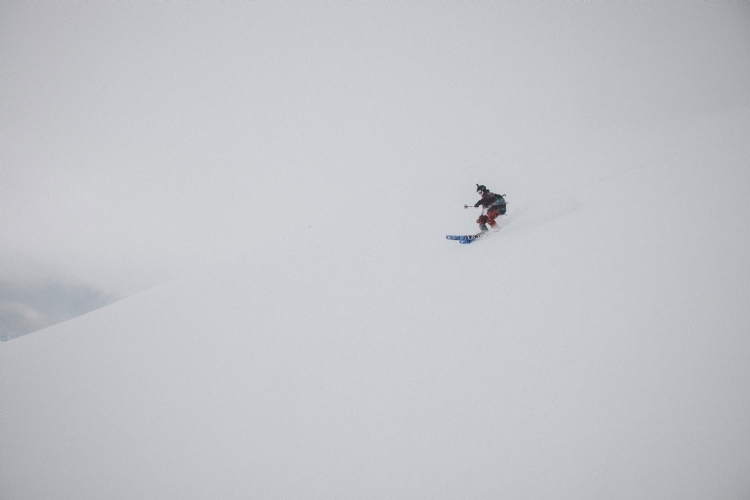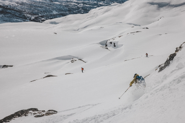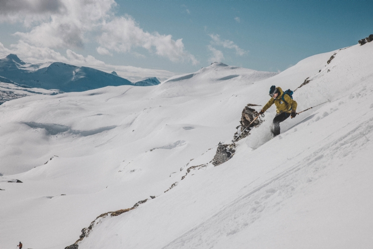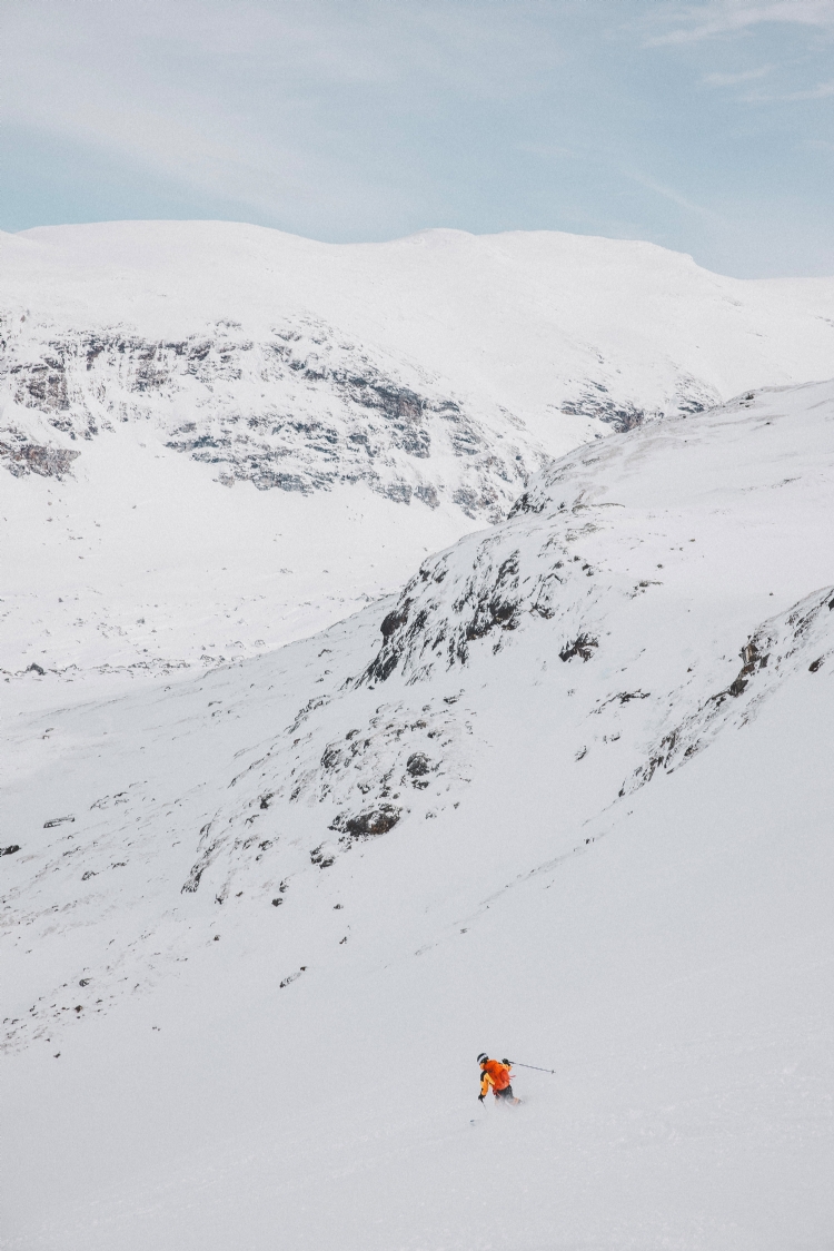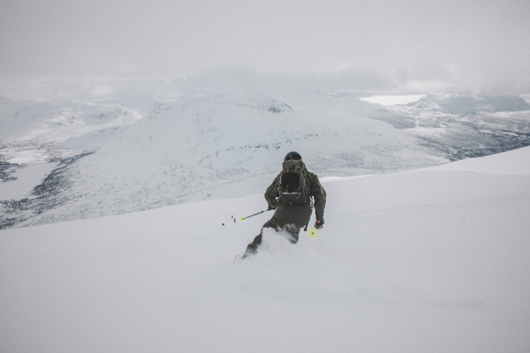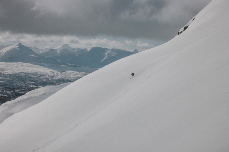 From Rånkeipen you have the greatest view in the Narvik area. Nicklas skiing down from the summit. April 2008.     Photo: Andreas Bengtsson